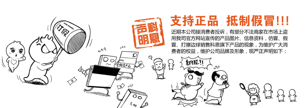 特此聲明:本公司對已發(fā)現(xiàn)的偽劣、仿冒和假冒科恩產(chǎn)品逐步曝光,希望廣大消費者提高警惕,避免不必要的損失,對提供舉報線索的用戶本公司給予重獎。