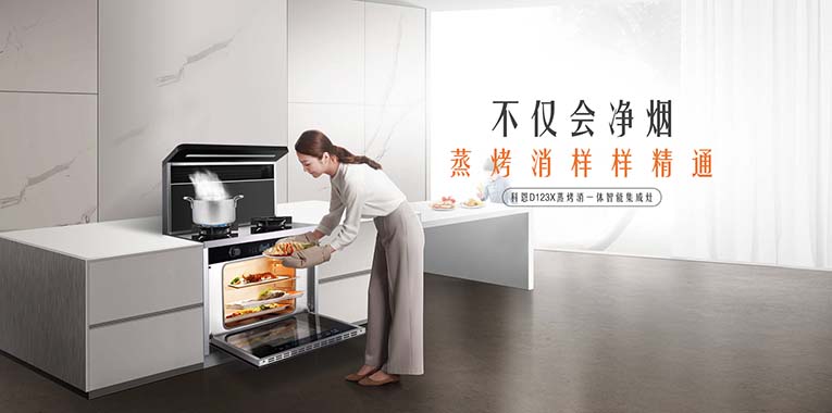 集成灶十大品牌、廚電行業(yè)十大品牌科恩D123X變頻蒸烤消一體集成灶,一臺集成灶=煙機+灶具+蒸箱+烤箱+消毒柜+1米櫥柜,節(jié)省了80%的廚房電器,讓廚房視野更加開闊。D123X變頻蒸烤消一體集成灶不僅會凈煙,蒸烤消樣樣精通,十大模式30-200℃廣域控溫,噴氣式4D立體蒸+底部陶瓷加熱盤,0-120℃升溫僅需200秒內(nèi)腔頂部兩組加熱管,防止蒸汽上升,頂部不漏水,四面受熱均勻、營養(yǎng)不流失,徹底“蒸”服你的味蕾;智能恒溫烤箱,4D烘烤熱量均勻,操作簡單,200℃高溫烤,邊角位置也能烤到。62L大容積蒸箱,一次蒸多種食物不串味。