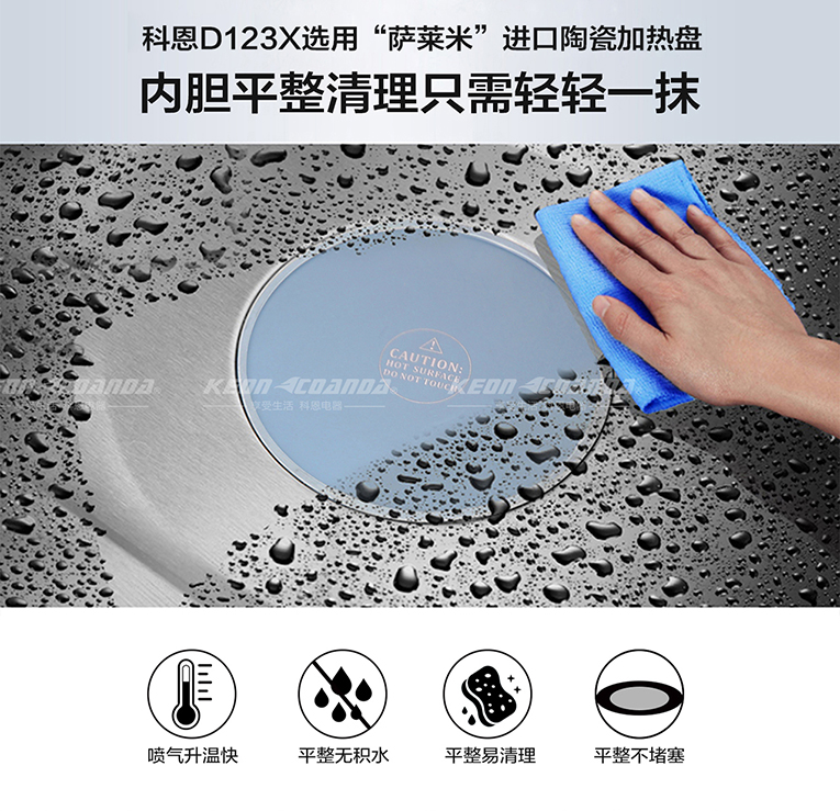 科恩智能蒸烤消一體集成灶的蒸烤箱通過“薩萊米”陶瓷加熱盤產生蒸汽,并滲入食物中來使食材熟透,蒸烤箱底部有一個光滑平整的加熱盤,隱形導流管將外置水箱中的水引流至加熱盤內,加熱盤不斷升溫,到一定溫度是,盤內的水就會蒸發成水蒸汽,蒸汽在箱內彌漫,滲入食物中。蒸箱、烤箱作為常用的家電,被嵌入集成灶箱體,不僅僅能夠節省空間,更能夠滿足不同用戶的不同烹飪需求!