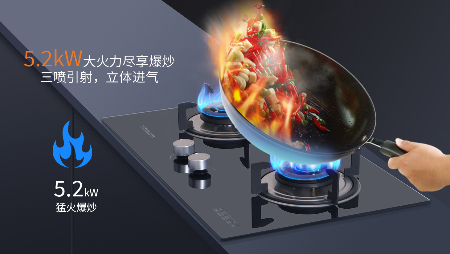 黑晶鋼化玻璃重塑清潔革命,防爆面板扛得住重擊,油漬一抹即凈。搭載航空級鋁合金燃燒器,防油防銹,不易變形。三年如一日的光潔質感。科恩灶具KN89無懼爆炒,采用懸浮式燃燒系統,充分補氧,助力燃燒。5.2KW火力全開,高效爆炒鎖住食物鮮香,點燃烹飪激情。搭配黑色搪瓷防滑爐架,耐高溫不易變形,火蓋與分火器一體設計。避免清洗后錯裝,KN89細節處盡顯貼心。