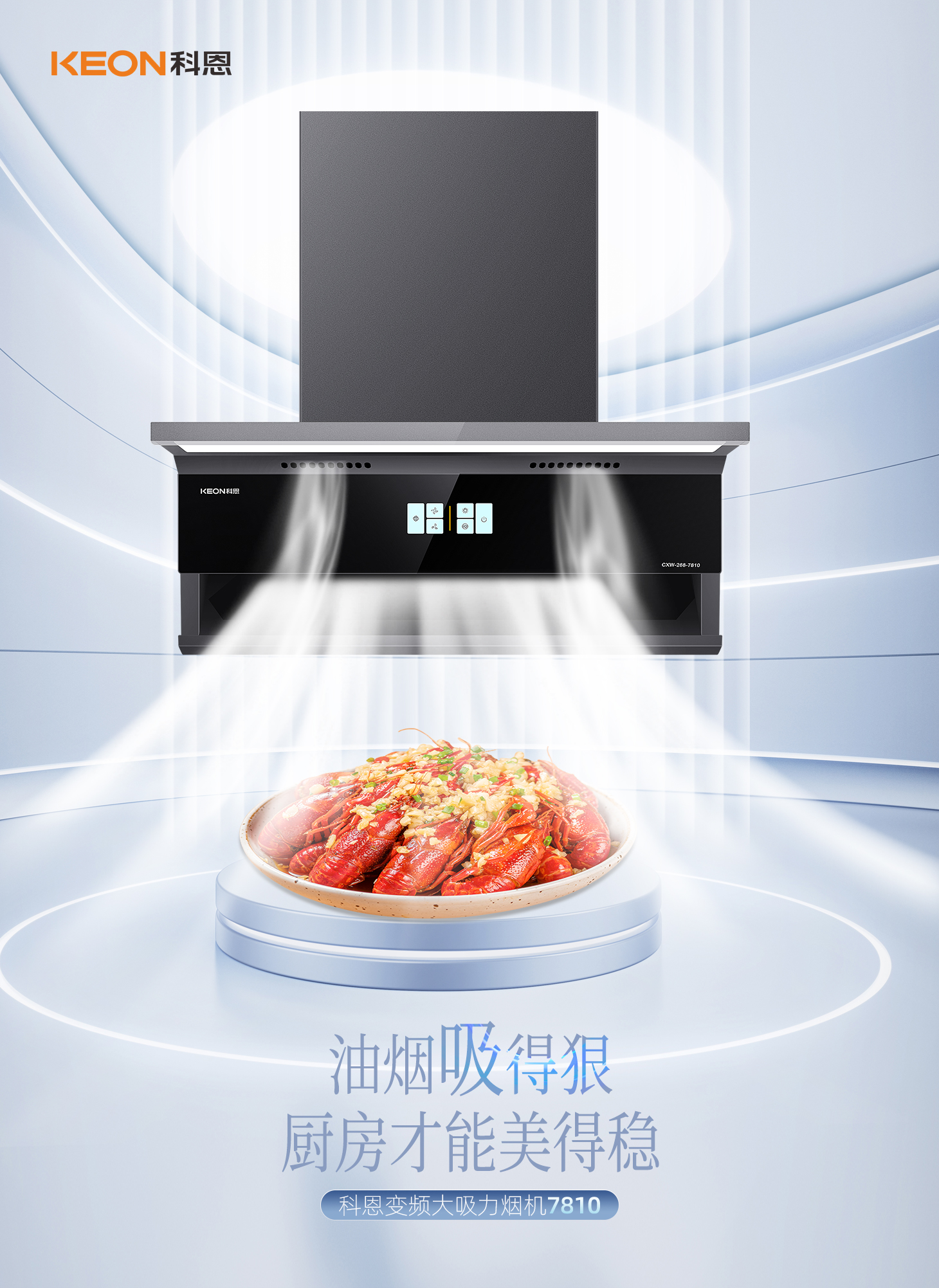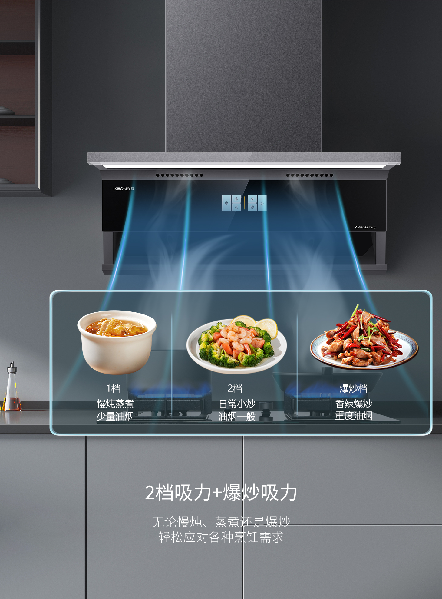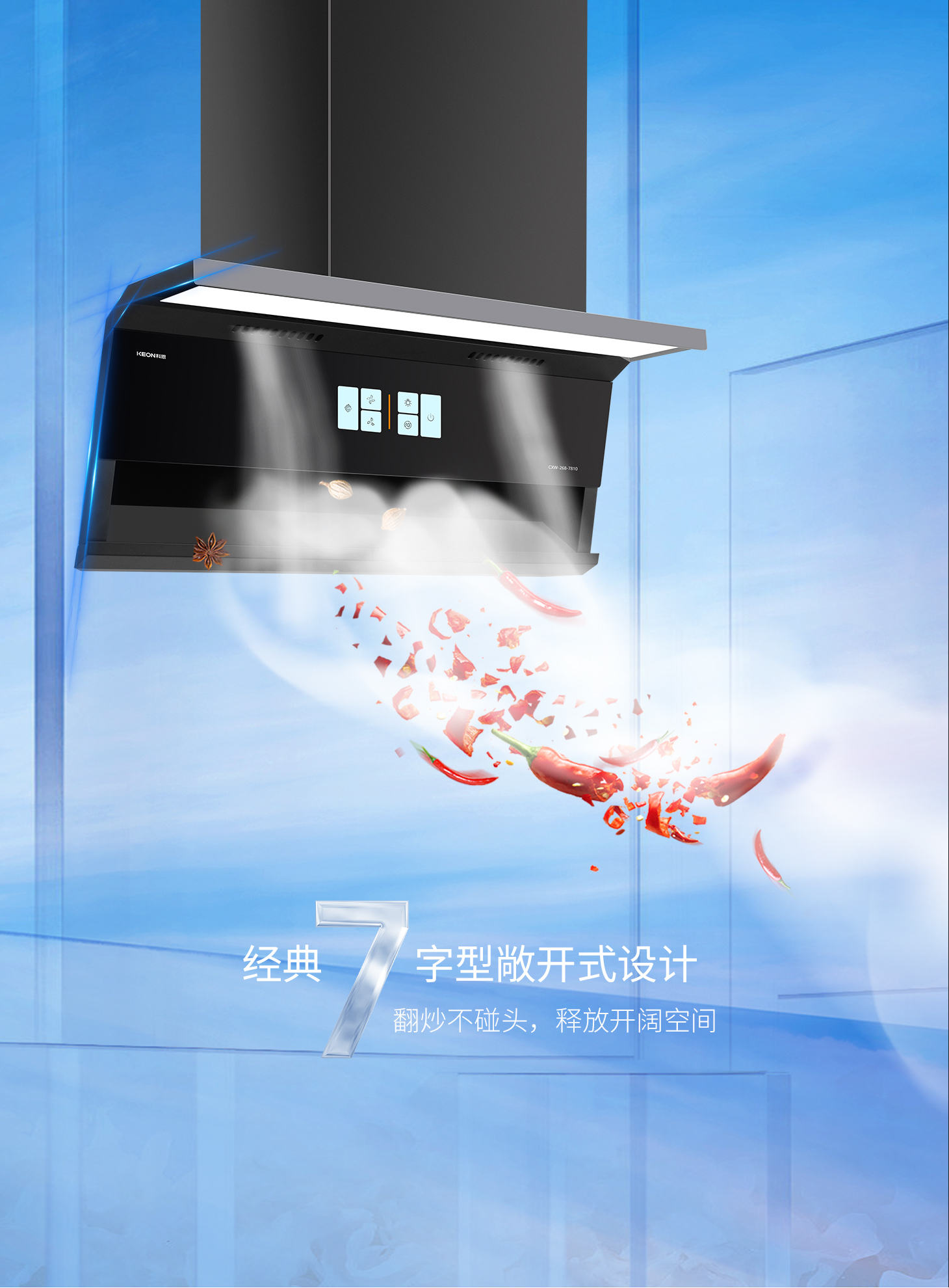 科恩旗艦款大吸力油煙機7810,兩檔吸力+爆炒模式,輕松下廚零負擔。智能自清洗去除頑固油污,延時凈煙自動清除余味,守護廚房每一寸清新。攜手科恩,煥新生活。科恩7810凈煙有魄力,廚房方寸皆自由。這個舊廚煥新季,換一臺會思考的煙機,給廚房一次溫柔革命!