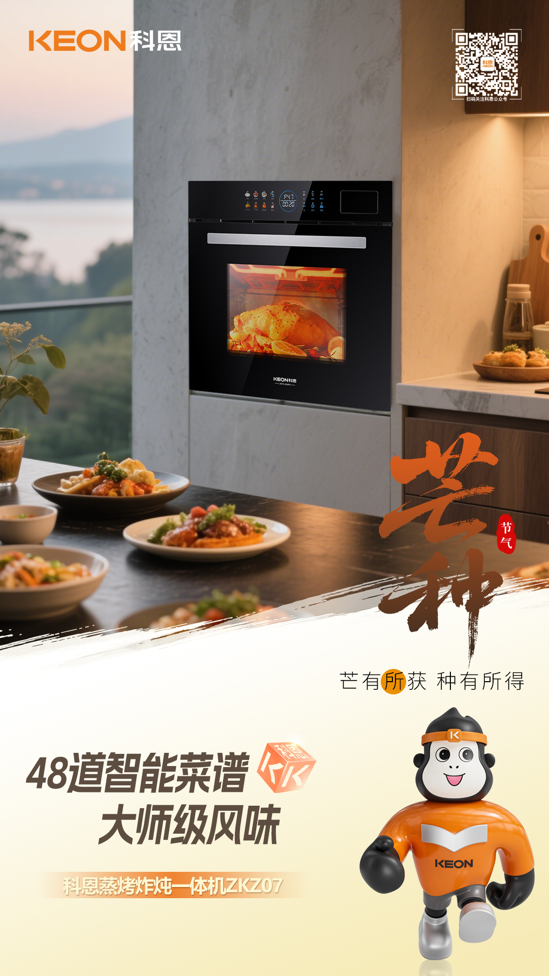仲夏蟬鳴起,新麥入倉時。芒種麥香濃,廚房煥新章。科恩匠心推出ZKZ07蒸烤炸燉一體機,用科技重新定義烹飪藝術,讓每一道菜都成為時令佳作,為家人帶來舌尖上的驚喜!