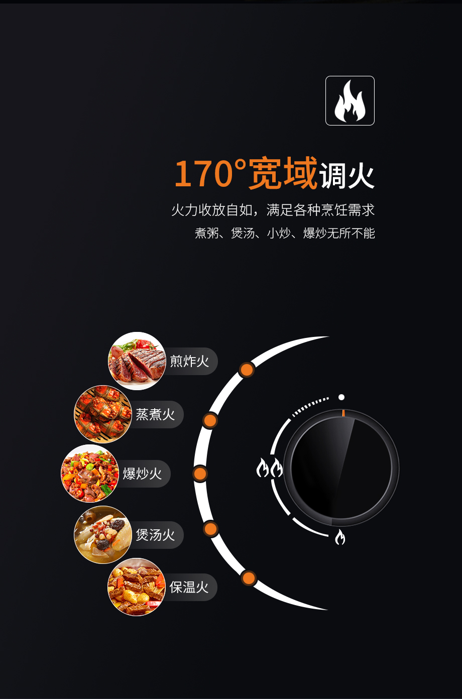 5.2kW大火力+三噴引射技術,立體進氣混合,鍋底均勻受熱,爆炒出“鑊氣”,慢燉鎖鮮味 ,讓家常菜也能媲美米其林火候 。黑晶鋼化玻璃面板+航空級鋁合金燃燒器,油污一擦即凈,高溫不變形,歷經千萬次翻炒,依然光潔如新。170°寬域調控,火力收放自如,滿足各種烹飪需求,意外熄火保護,火焰意外熄滅瞬間切斷氣源 。KN800L燃氣灶保障下廚安全,讓你烹飪無憂。