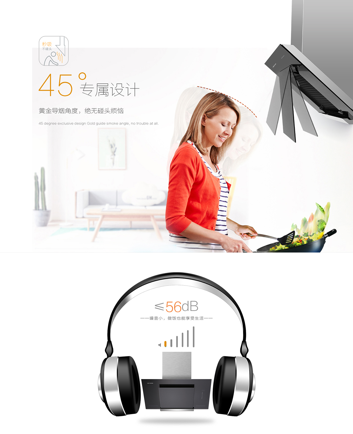 - 45°專屬設(shè)計(jì),黃金導(dǎo)煙角度,無碰頭煩惱。