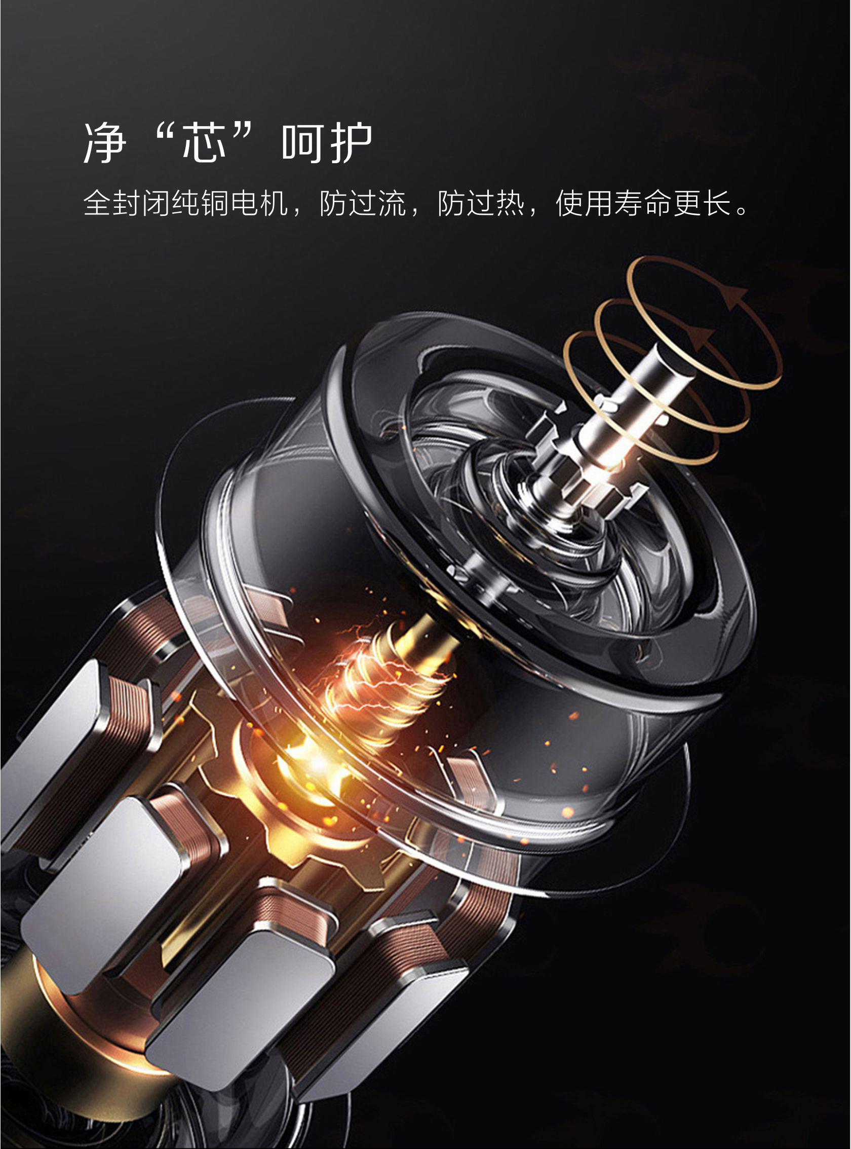 - 凈“芯”呵護,全封閉純銅電機,防過流,防過熱,使用壽命更長。