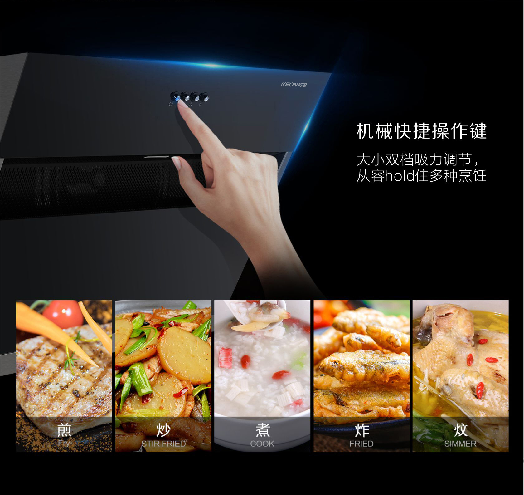機械快捷操作鍵,大小雙檔吸力調節,從容hold住多種烹飪。