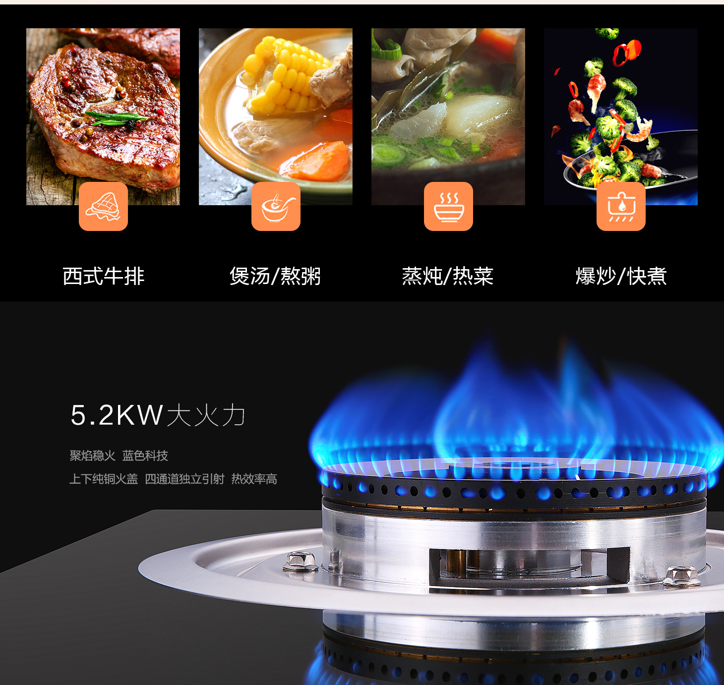 銅火蓋帶高熱效鑄鐵聚能環,熱效率高