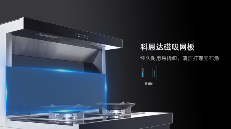 150°俯沖式不銹鋼設計,導流更順暢,科恩達磁吸網板,經久耐用易拆卸