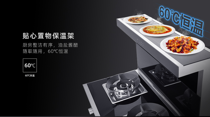 創新L型機頭設計,有效攏煙,貼心置物保溫架,60℃保溫