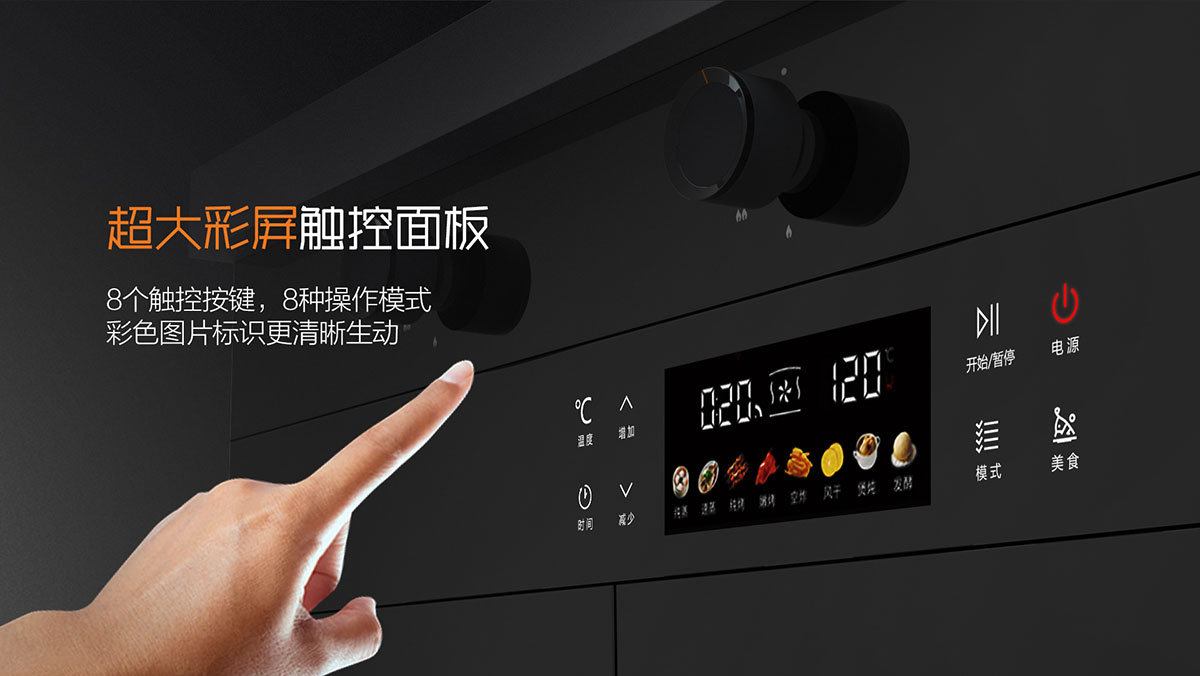 - 八大模式四大輔助功能,73L大空量,蒸烤炸燉一體,智能廚房一步到位