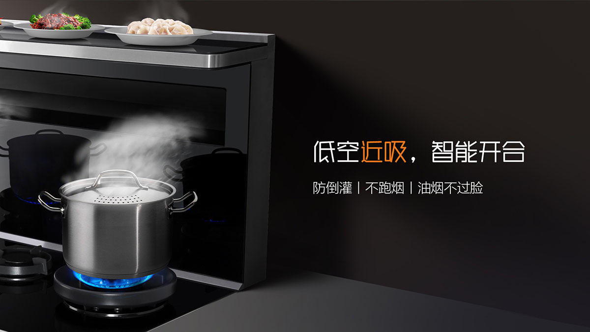 - 煙灶風火聯動,點火煙機自動開啟,風量隨火力大小自動調節