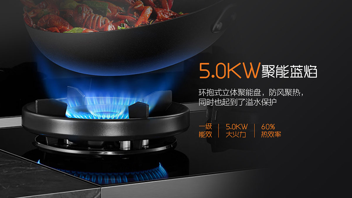 - 三灶同烹,5.0kW猛火爆炒+1.6kW文火慢燉,高效全能,美味加速