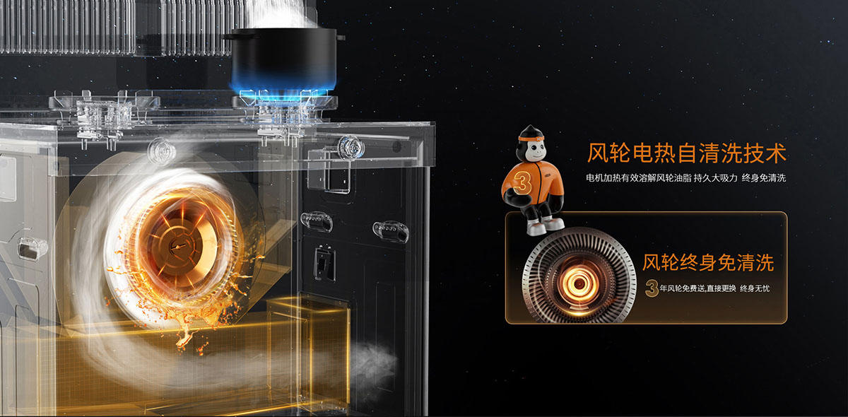 變頻電機(jī)大吸力,快勁吸煙源動(dòng)力,遇強(qiáng)則強(qiáng),無懼烹飪高峰