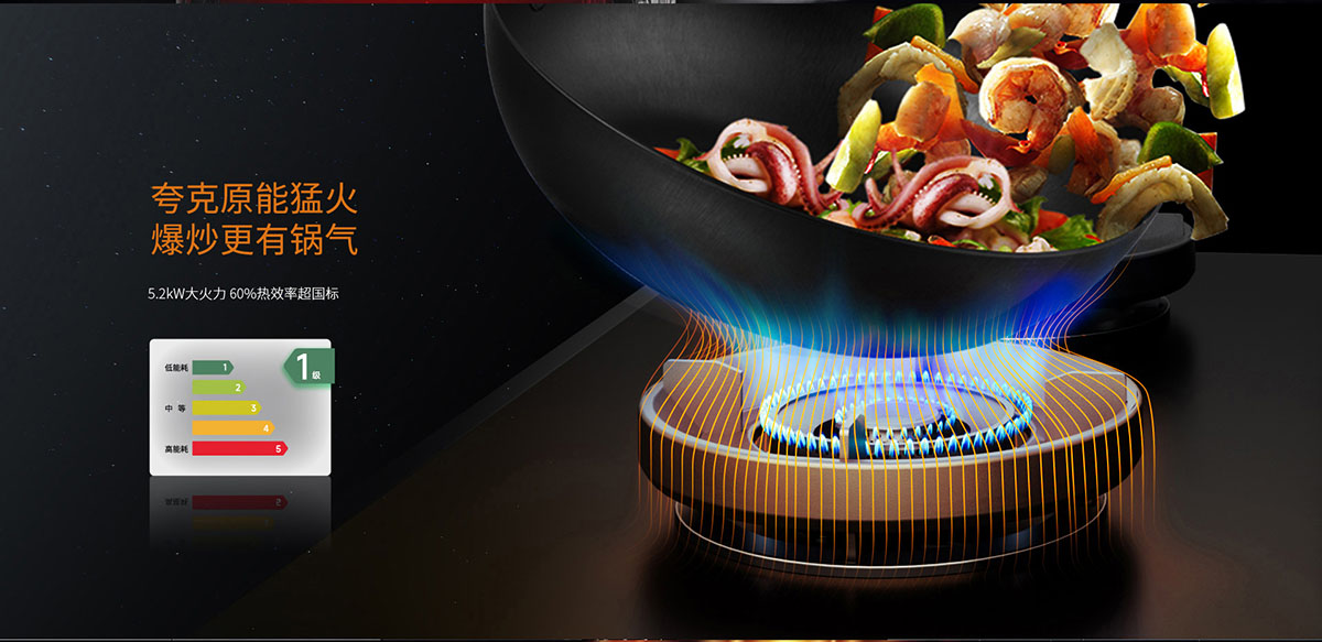 一級(jí)能效,5.2kW 大火力,全進(jìn)風(fēng)設(shè)計(jì),燃燒充分,爆炒給力
