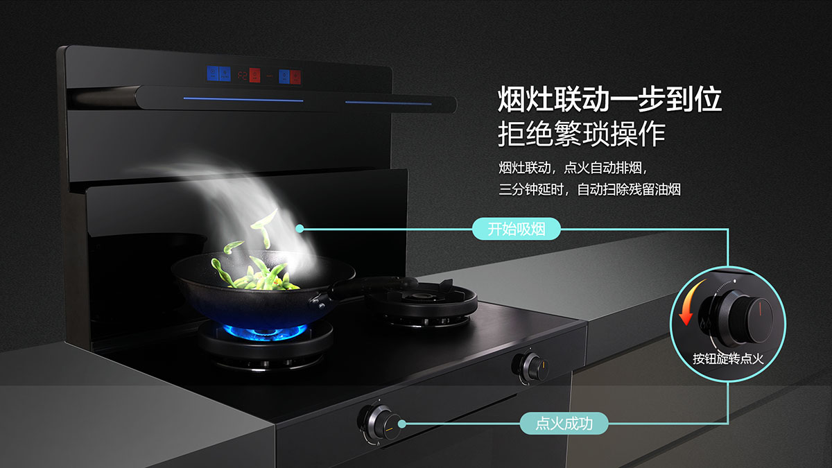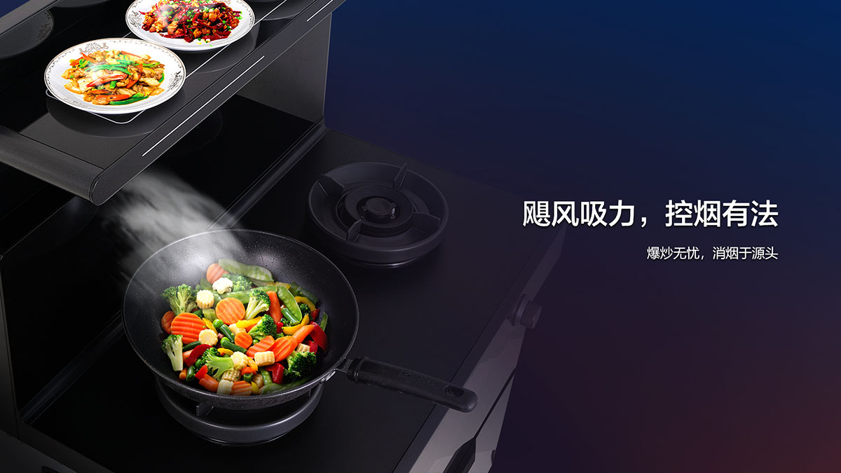 創(chuàng)新蘋果機頭,懸浮式隔煙設計,油煙0擴散