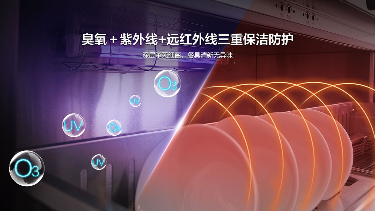 臭氧+紫外線+遠紅外線三重保潔防護,深層殺菌