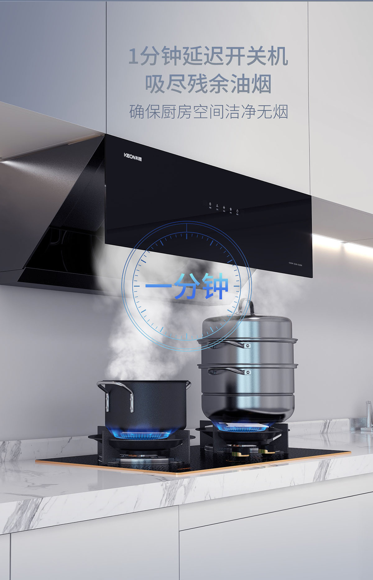 23m³/min颶風吸力,瞬吸油煙,打造無煙廚房