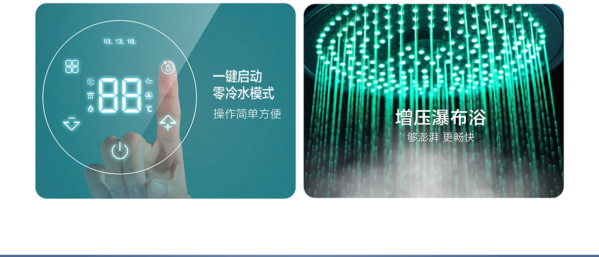 - 采⽤分段燃燒技術,⽔溫調節范圍更廣,速度更快