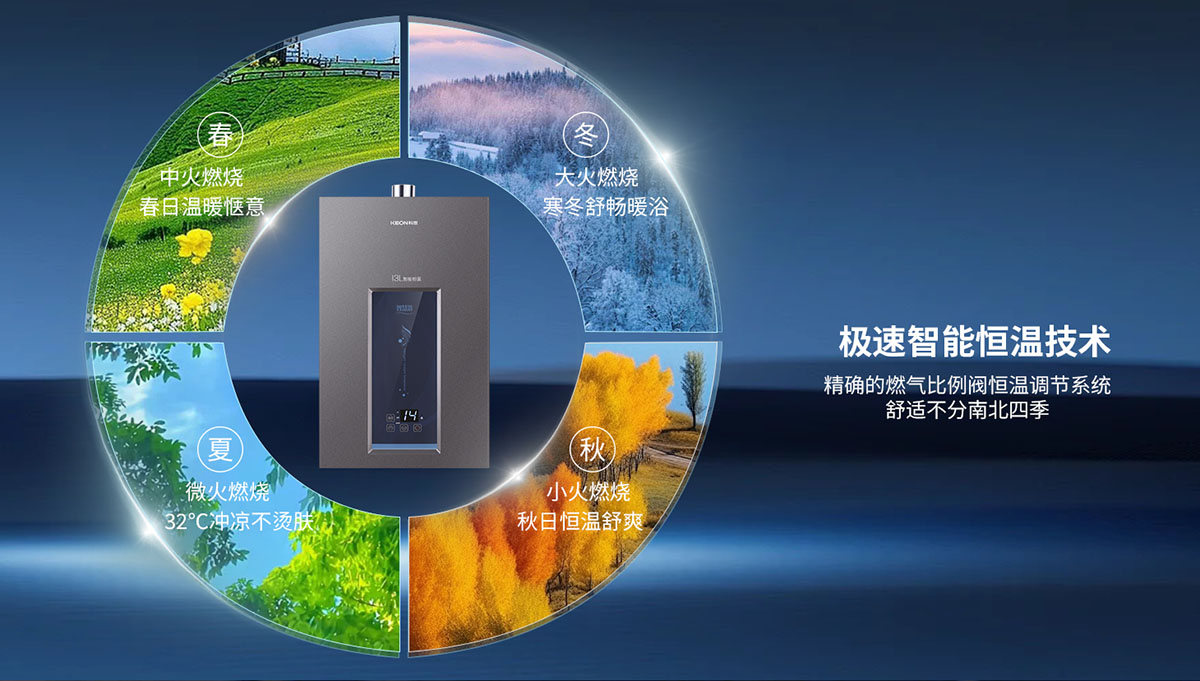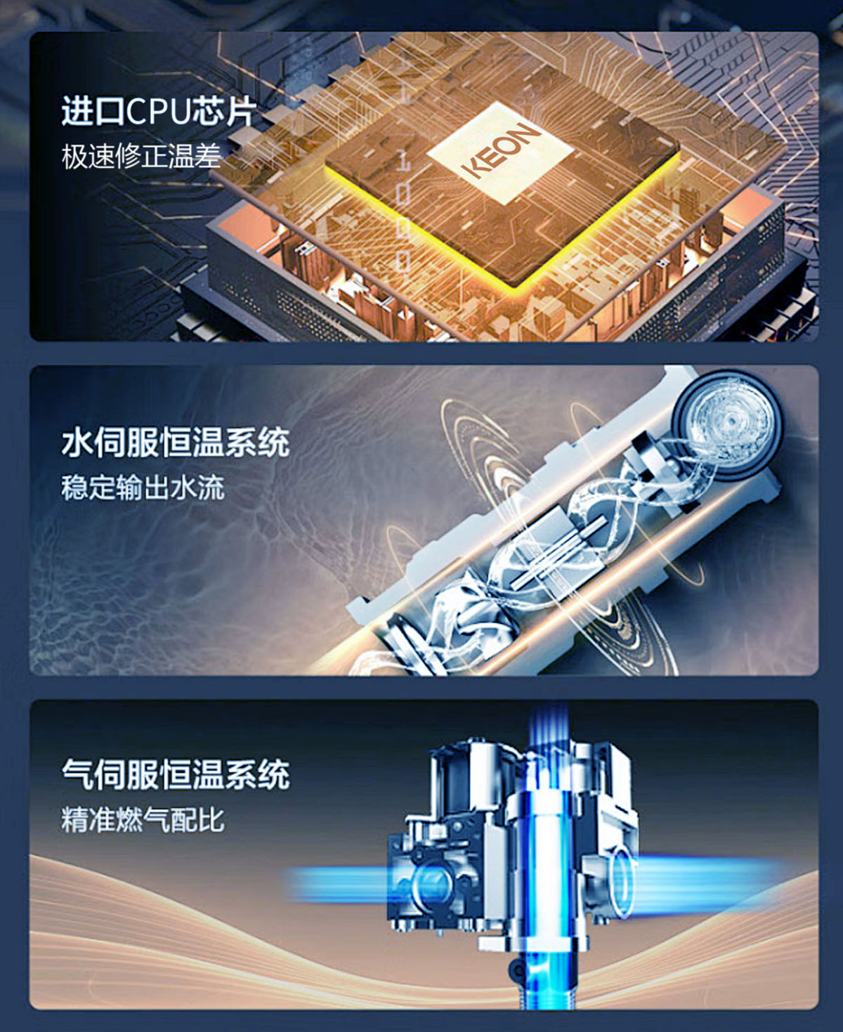 - 極速智能恒溫技術,精確的燃氣比例閥恒溫調節系統。