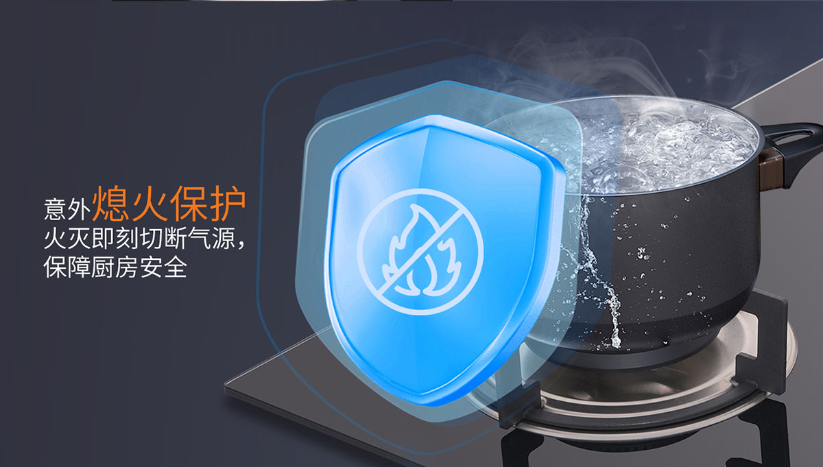 - 意外熄火保護(hù),火滅即刻切斷氣源,保障廚房安全
