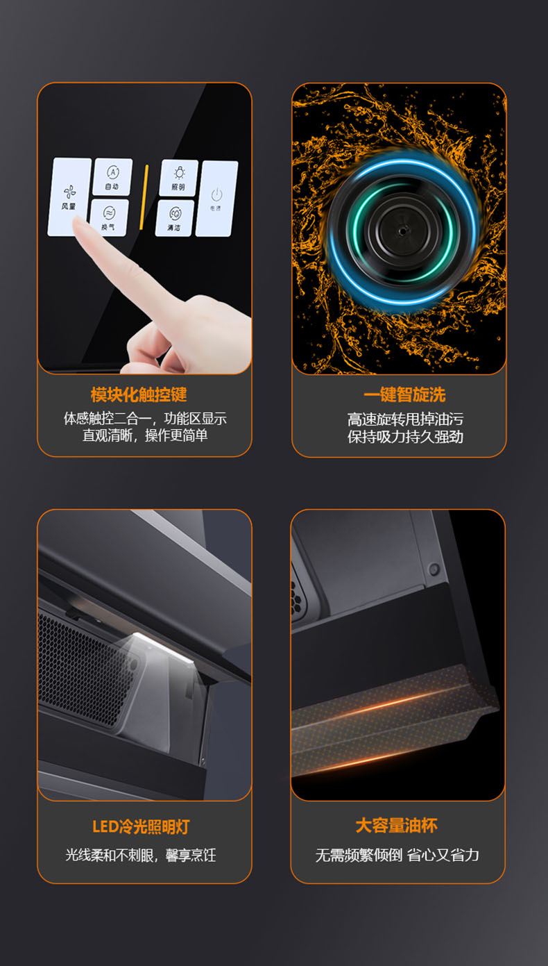 健康至始至終,3分鐘自動(dòng)延時(shí),除盡烹后余煙