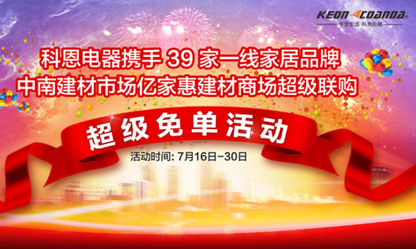 Detail >>7月16日—30日,為期15天的中南建材市場億家惠建材商場超級聯(lián)購大免單活動火熱舉辦中,此次活動由浙江科恩電器牽頭,...